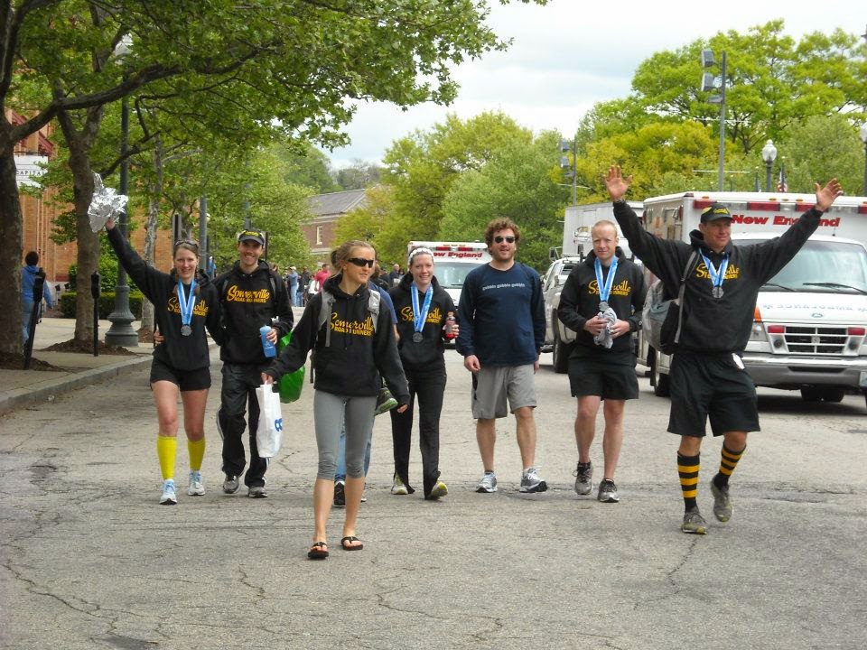 apparently, if you drove and parked that was not the case). The shuttle drove us across town to the start line at Crescent Beach. I caught up with Eva and Matt in the start corral.